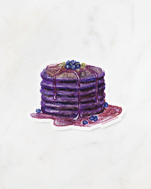 Is it even Halloween brunch without bright purple ube pancakes topped with pandan flakes and blueberry syrup?