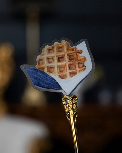 This waffle sticker is so good you could almost smell the caramelization of the pearl sugar atop the brioche-based dough.