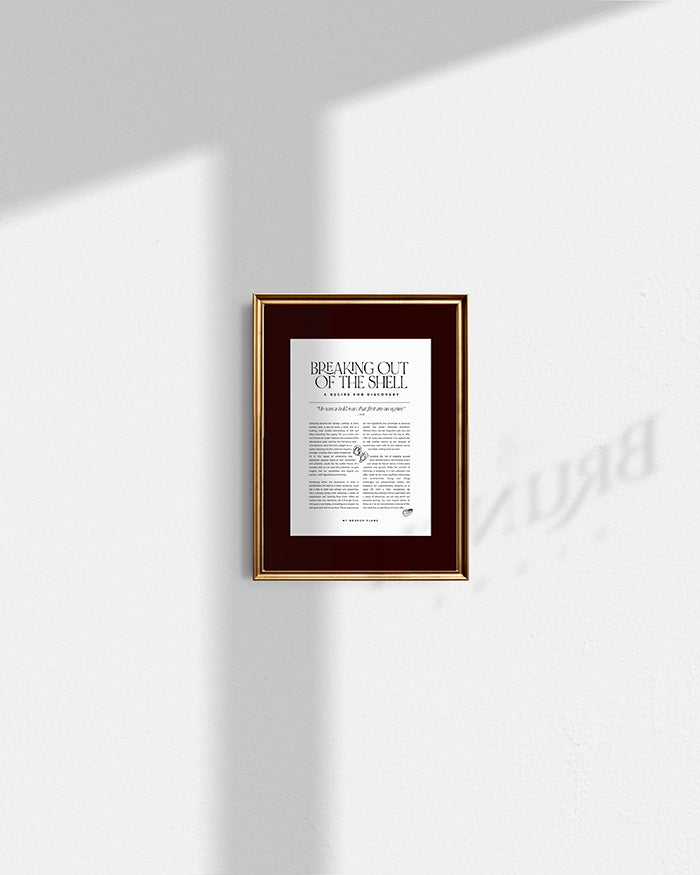The "Breaking Out of the Shell" art print is a stylish reminder to step beyond your comfort zone. With a clean, minimalist design inspired by traditional magazine article layouts, this piece brings thoughtful encouragement to any space. Perfect for those who appreciate simplicity with a playful twist, it motivates you to embrace growth and new experiences every day. Ideal for modern interiors, this print blends art and inspiration effortlessly.