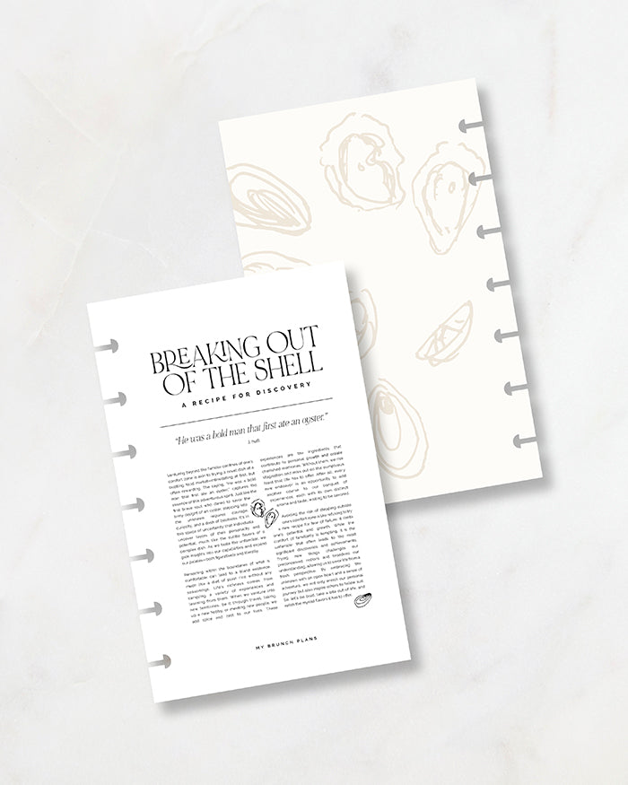 The "Breaking Out of the Shell" dashboard is a stylish reminder to step beyond your comfort zone. With a clean, minimalist design inspired by traditional magazine article layouts, this piece brings thoughtful encouragement to your planner. Perfect for those who appreciate simplicity with a playful twist, it motivates you to embrace growth and new experiences every day.