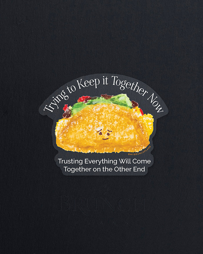 This series is for the hangry inner child inside every adult that never put themselves first, and this is the perfect way to start reminding yourself to. With our Keeping it Together Vinyl Sticker, even if it feels like your life is falling apart like a taco, you can still find humor in the chaos. Embrace the journey and know that everything will fall into place in the end.