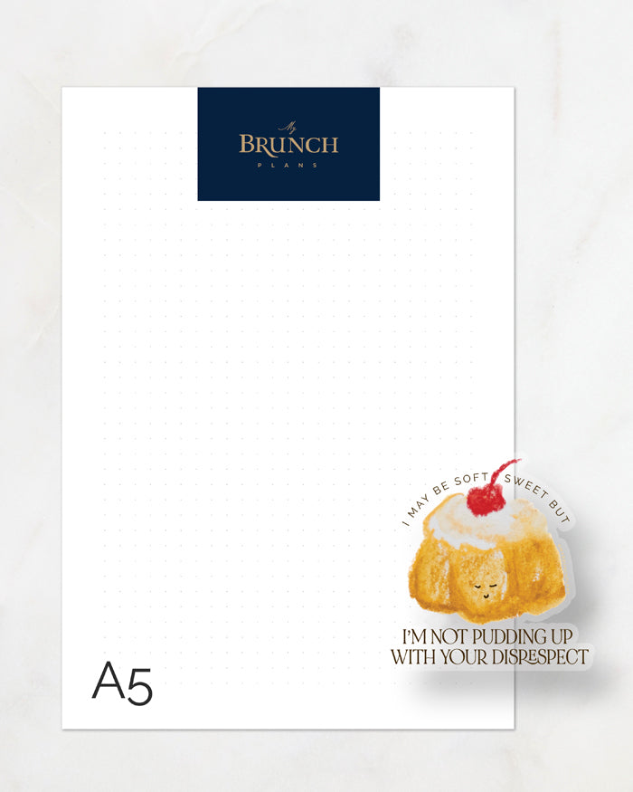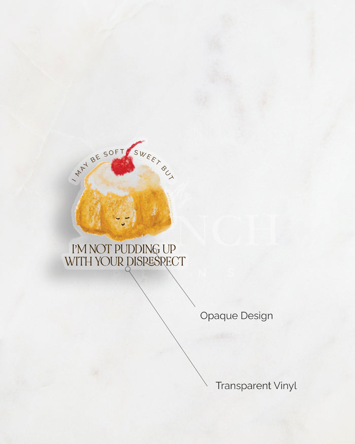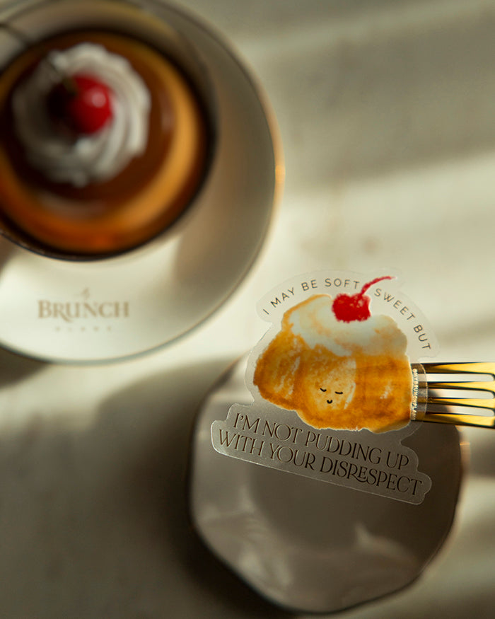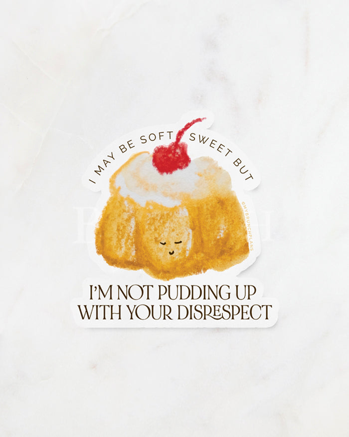 This series is for the hangry inner child inside every adult that never put themselves first, and this is the perfect way to start reminding yourself to. "Pudding Up With You" vinyl sticker is a playful reminder to set boundaries, say no to people pleasing, and have some self respect. Don't let anyone pudding you down!