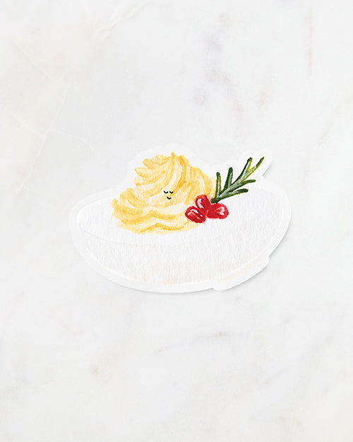 The classic deviled egg adorned with rosemary and pomegranates- nice enough to stick along where ever you put it, but still on the naughty list for it's devilish cuteness.
